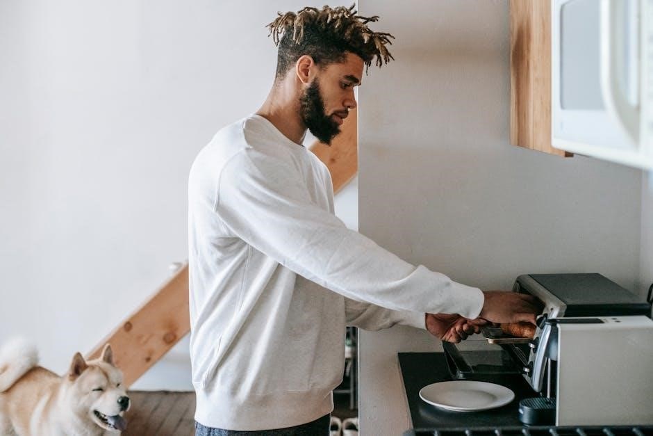 The Black & Decker Toaster Oven Air Fryer manual clearly outlines the necessary voltage and frequency for optimal performance. It’s crucial to verify your household electrical supply matches these requirements before operation. Incorrect voltage can damage the appliance and void the warranty. The manual emphasizes using a grounded outlet and avoiding extension cords for safe and efficient power delivery, ensuring consistent cooking results.